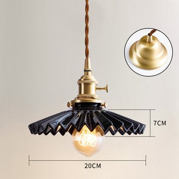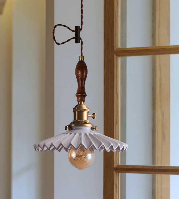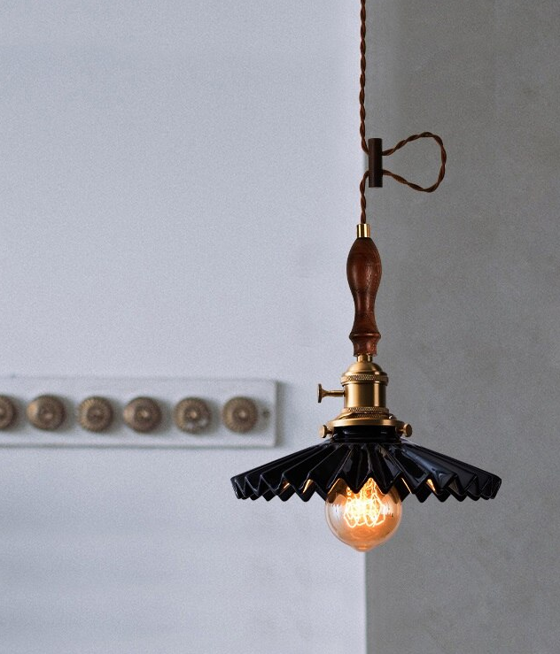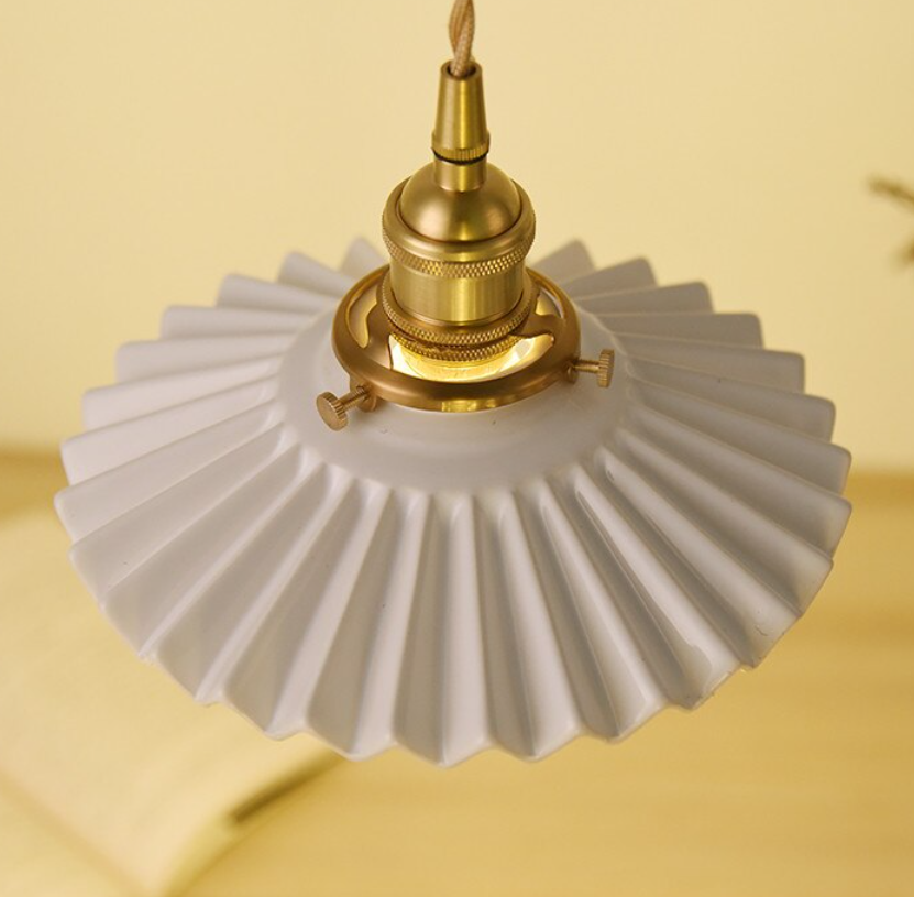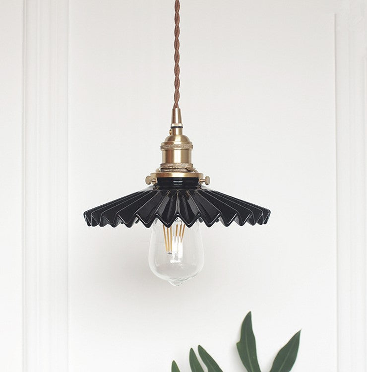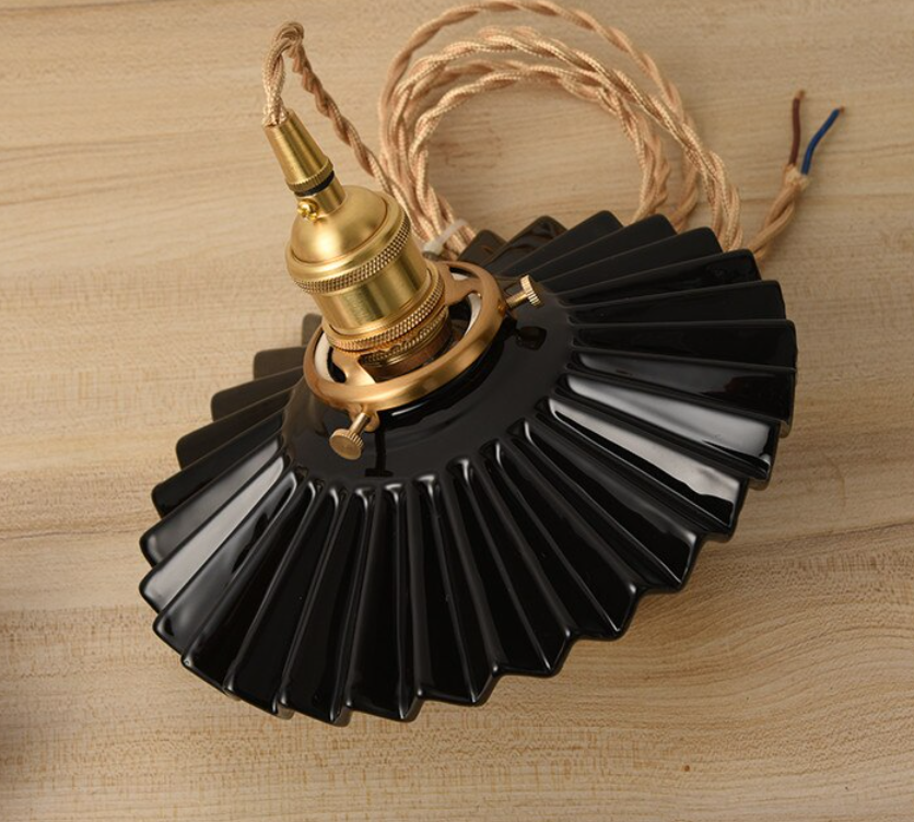 Fluted Ceramic Pendant Light with Wavy Black and White Shade