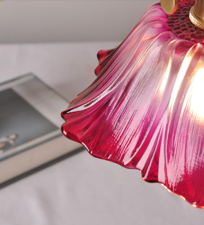 Artistic Pink Flower-Shaped Glass Pendant Lamp