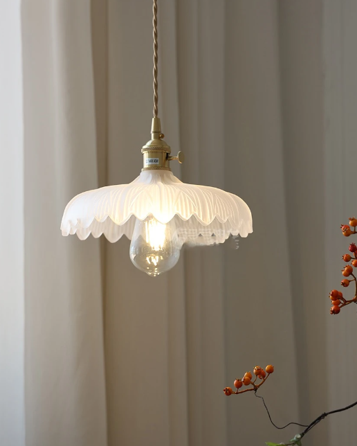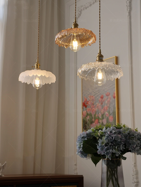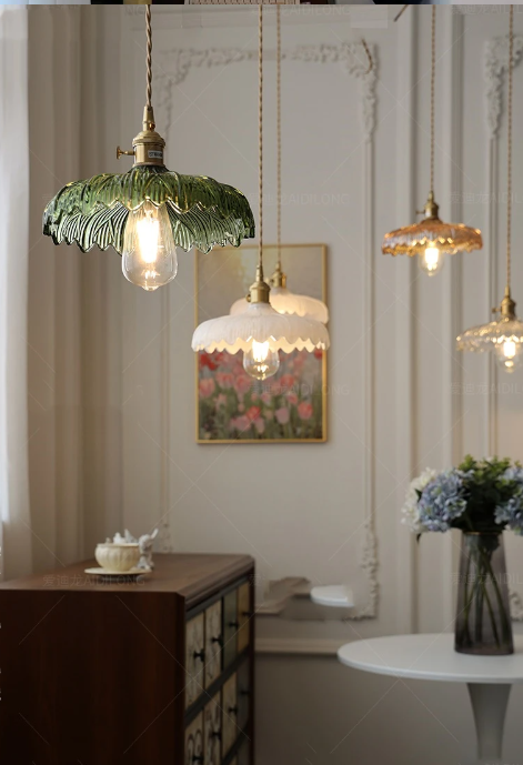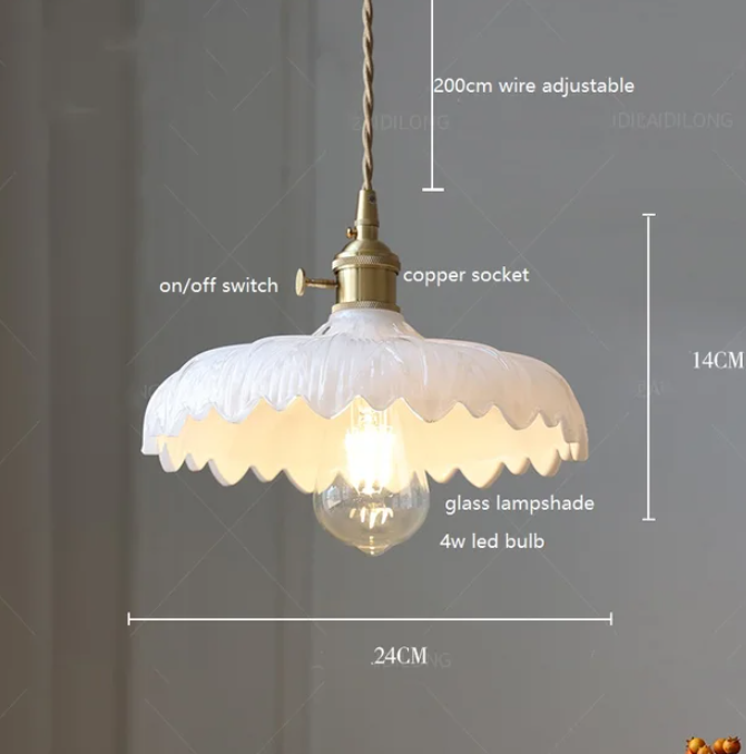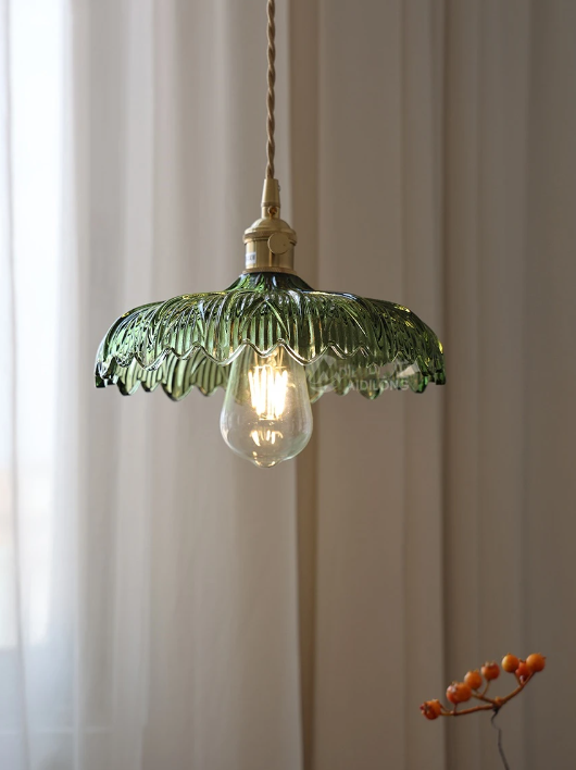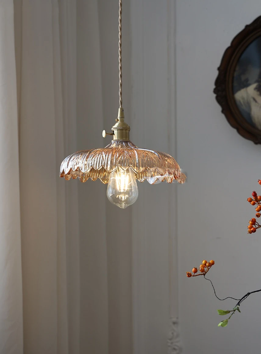 This stunning glass pendant light combines the elegance of tulip-shaped edges with a burst of vibrant multi-color hues. Its wide-open design allows for ample illumination, casting a mesmerizing play of colors across the room. Perfect for adding a touch of artistic flair and warm ambiance to any space, this pendant light is sure to be a captivating focal point in your home like Dining room, Kitchen Island, Bedroom or even living room.